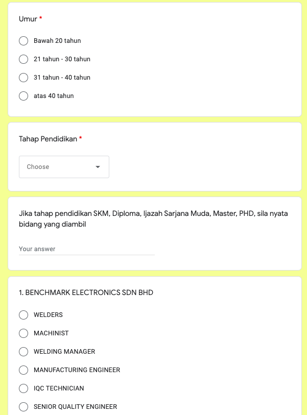 Berikut adalah senarai jawatan yang ditawarkan, gaji dan taraf pendidikan mengikut jawatan yang diiklankan oleh majikan: