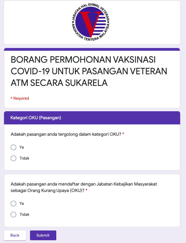 CARA MOHON VAKSINASI COVID-19 UNTUK PASANGAN VETERAN ATM SECARA SUKARELA